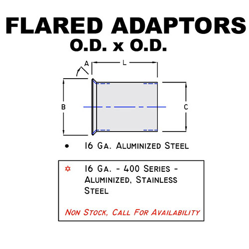 Part Description: 3 1/2" O.D. - O.D. 45 DEGREE FLARED ADAPTOR ALUMINIZED