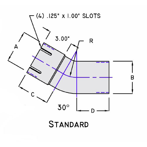 Part Description: 3 1/2" I.D. - O.D. 30 DEGREE ELBOW ALUMINIZED
