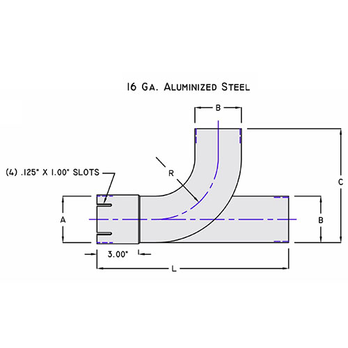Dimensions: (A) 4" (B) 4" O.D. ( C) 10 1/2" (R ) 6" (L) 16 1/2"